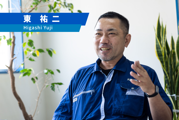 前職ではバイク部品の製造に携わっていました。職場に大きな不満はなかったのですが、転勤の可能性があることにどこか不安を感じていたんです。そんなとき、以前から親しくしていた社長に声をかけてもらいました。人柄をよく知っていたこともあり、一緒に働けるなら、と思えたことが入社の決め手です。実際に働いてみると、社長の人柄が会社の雰囲気にも表れていて、社員同士の距離が近く、なんでも話せる風通しのよさがあります。