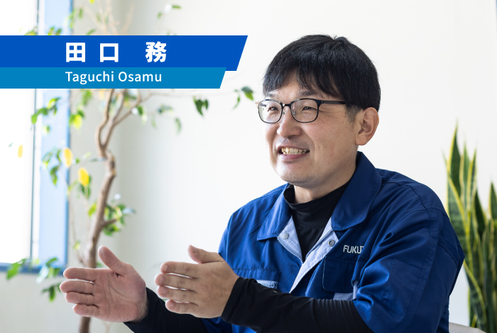 前職では製造の仕事をしていました。長時間労働が当たり前で残業は月200時間ほどになることも。心身ともに余裕がなくなり、1年半で転職を余儀なくされたというのが正直なところです。転職にあたり、重視していたのは働く環境でした。フクテックは家から近くて、残業も少なく何よりアットホームな印象を受けたんです。前職を辞めてから半年ほどは何もせずに過ごしましたが、そんなブランクがある自分も温かく迎えてくれました。